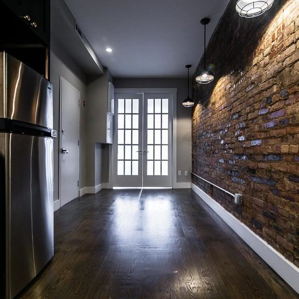 3 Bed / 1 Bath in Bushwick, Brooklyn. Pets are allowed. Spacious, gut renovation in a 3 story 1907 rowhouse. Exposed beams, high ceilings, skylights, industrial light fixtures and exposed brick walls enrich the apartment's appeal. The open galley kitchen is outfitted with exposed shelving, white subway tile, new stainless appliances and a vintage inspired gold faucet. Central air and an inline water heater ensure that you'll always be comfortable. Laundry hookups in the unit. Call now to view! High Ceilings Hardwood floors Exposed brick Central A/C Washer dryer hookup