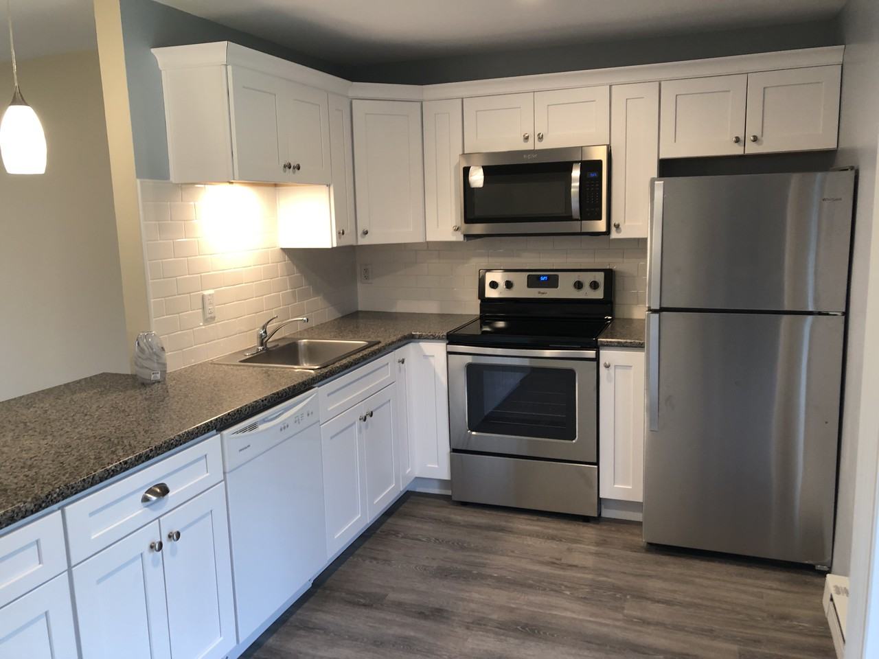 1 bedroom, 1 bathroom newly renovated condo. Head-to-toe interior refinished last year with new flooring, paint, appliances, and remodeled kitchen and bathroom. Open floor plan with spacious kitchen and lots of sun exposure through two large sliders. Updated heating system. Private balcony, corner unit with patio and yard access. Beach rights to crescent beach just a couple blocks away. Community laundry room and tennis court on site. Nonsmoker with no pets please.