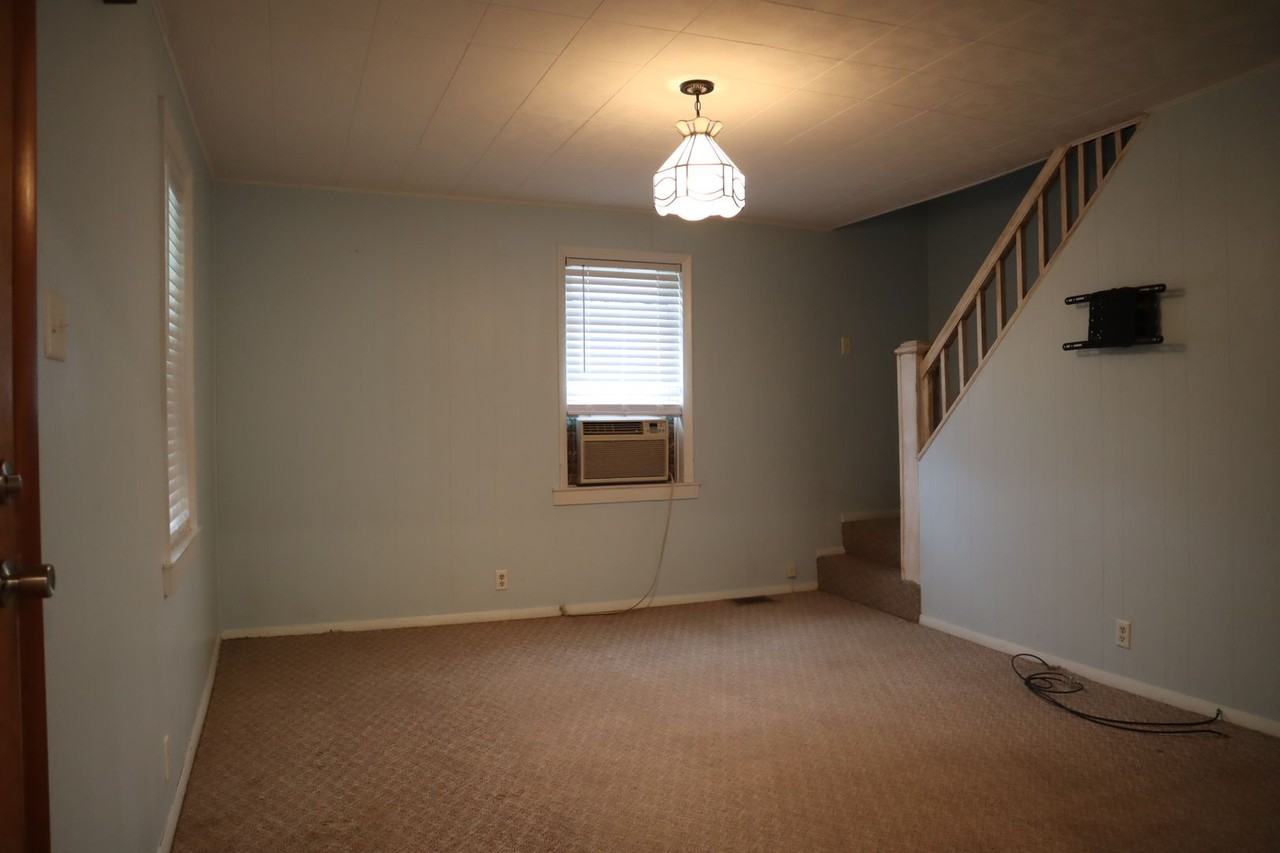 This home features a large, enclosed, well maintained yard with a garage and a second floor deck with a beautiful view of a park across from the creek that runs behind the property. It has 2 bedrooms on the second floor, kitchen, living room and bathroom on the first floor, and a basement with washer and dryer hook ups (gas dryer). Small to medium dog or cat is allowed with additional rent and deposits. Tenants pay all utilities.