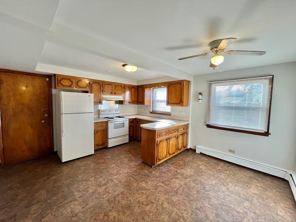 Spacious one bedroom apartment in Calumet Park with eat-in kitchen. Heat, water, and trash included in rent. 12 month lease, background/credit check required, minimum net income $2500 per month, no pets. No deposit. $500 move-in fee required.