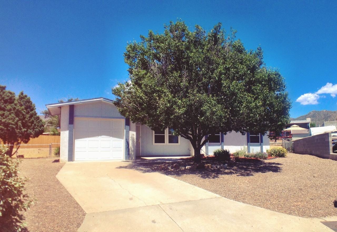 PRICE JUST REDUCED! Be the first to rent this buttoned-up home on a oversized, quiet cul-de-sac lot walking distance to Manzano High School! Skylights, a wood burning fireplace with built-in bookshelves, two separate living areas, ceiling fans, and lots of great touches throughout. The kitchen features a full-sized refrigerator, microwave, dishwasher & disposal, more built-ins, and an attached dining area. The master bedroom has a large walk-in closet, and a newly refinished 3/4 bathroom. An enormous backyard with a patio slab would be perfect for entertaining! Great location close to I-40, shopping, schools & parks. For more information or to schedule a showing, call Deacon Property Services at 505-878-0100 or visit our website at www.deaconpropertyservices.com.