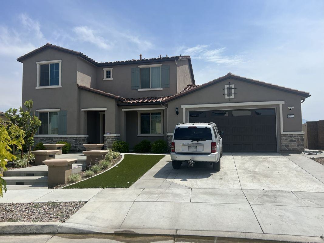 Amazing brand new luxury single home in gated Highland Grove community. Huge backyard with beautiful landscaping! Brand new partially furnished home waiting for your family to rent. 1st floor: 1 master br/full ba and 1 guest br/full ba, ideal for senior people. 2nd floor: 3 children's br/2 full ba's Plenty of storage room/spaces besides built-in closet in each bedroom. Brand new king-size bed in master bedroom and brand new queen size beds in each 3 children's bedrooms 3 car garage. Spacious backyard. (Landscaping on going) See 3D floor plan and model home pictures in 'pulte' website, in 'Find Your Home', choose 'California' 'Riverside County' 'Riverside' city, -- 'list 'Manors at Highland Grove', Model 'Oxford'