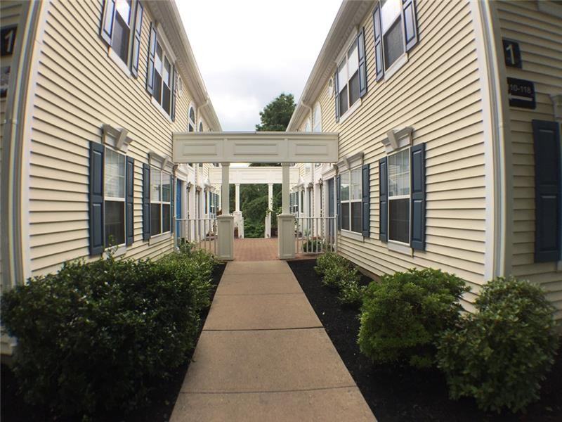 End unit backing to woods for privacy. Spacious living room with slider which opens to a patio overlooking open space, NOT the parking lot! Large eat in kit w/plenty of cabinets, new SS dishwasher & exhaust fan. Formal DR, MBD can fit a king size bed plus offers a walk in closet and private bathroom featuring a soaking tub, shower stall and double sink vanity w/new faucets. Second BD is light and bright with double closet. The laundry room has plenty of storage, washer/dryer included, plus new hot water heater. Condo freshly painted and new front door. Cedar Brook offers an outdoor pool, tenni