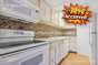 - Long white shaker cabinets