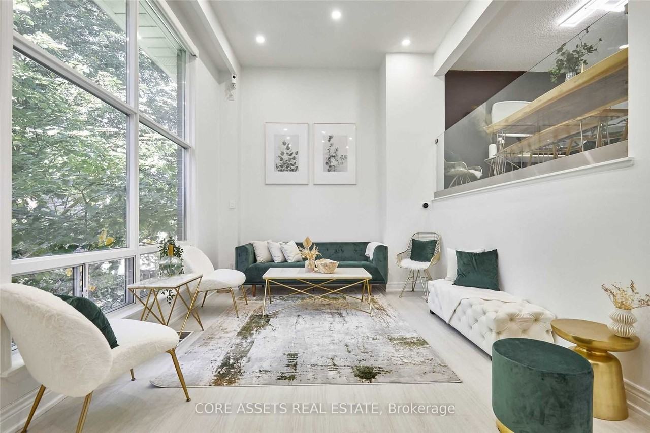 Welcome Home to the Easiest Move of Your Life Just Bring Your Suitcase! This stunning fully furnished 3-bedroom + den townhome combines quality, comfort, and convenience. Whether you're hosting dinner parties, working from home, or raising a family, this sun-filled space checks all the boxes. Step inside to a bright and airy layout featuring 12-ft ceilings in the living room with serene treetop views carried beautifully into the dining area and upgraded eat-in kitchen for seamless flow and style. Enjoy generous storage throughout, with custom closets and thoughtful finishes that elevate everyday living. The large den is perfect for a home office, while all three bedrooms are true, spacious retreats. The lower-level living room is ideal for entertaining, opening directly onto your own private outdoor oasis perfect for relaxing or al fresco dining. Located in a highly sought-after community, just minutes to Bayview Village, top-rated schools, lush parks, and major highways.