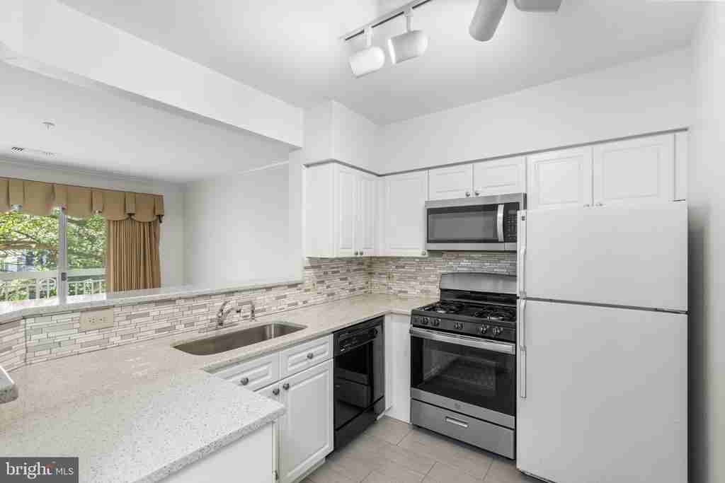 Brand New Paint and Carpet in well maintained and like new 2 BR / 1 BA condo in Worldgate Condos Community that comes with dedicated garage parking space and is blocks from Silver Line Metro! Upon entry to unit, you are met by Kitchen / Living Room Combination floorplan that connects to private balcony for exterior entertaining. Kitchen includes quartz counters, stainless appliances, custom subway tile, breakfast bar, pantry and in-unit washer/dryer. Living room includes gas log fireplace for decorative purposes only. Separate den/dining room area off of kitchen and living room can be used for entertaining or in home office. Primary bedroom with walk-in closet, ceiling fan and plantation shutters for extra privacy. Second bedroom with nice sized storage closet and also comes with ceiling fan and plantation shutters. Bedrooms in unit share updated bathroom with dual entry from both the primary bedroom and hallway. Bathroom includes granite counters, stand-in shower with soaking tub and vanity with storage. Along with garage space, unit also comes with permit parking and community has plenty of guest parking. Community also includes outdoor pool and fitness center. Close to the Toll Road/267 and Route 28 for commuting, Dulles Airport and the Silver Line. Worldgate shopping center is nearby with restaurants, coffee, retail and movies. A great location and great condo, do not miss out! Available immediately, small dogs considered.