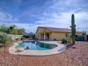 Pet-friendly Oro Valley rental with outdoor spaces, no breed or pet restrictions, and a required pet deposit, making it convenient for those with animals. Nearby top-rated schools include an elementary school just over half a mile away and a high school under 3 miles. Sixteen listing photos provide a detailed visual overview of the home and its features for prospective renters.