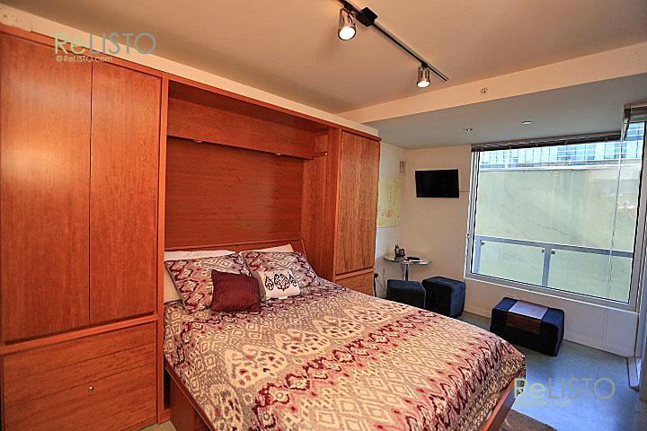 This Studio Condominium at the Cubix, a âGreenâ building, is loaded with features like concrete floors, stainless steel appliances, and a murphy bed, The unit is light-filled, stylishly appointed, and makes incredible use of space while possessing all the everyday conveniences of city living. Green building features are incorporated throughout, from drought tolerant plants on the landscaped roof-top deck to the City Car Share pods in the garage. -Built-in Bookshelves/Storage -Cable -Electric Stove -Flat Screen TV -Fully Equipped Kitchen -Furnished -HDTV -High Ceiling -High Speed Internet -Radiant Heated Floors -Roof Deck with Cabanas and BBQs -Security System -Stainless Steel Appliances -Pricing Based on Lease Start by 4/15/2014