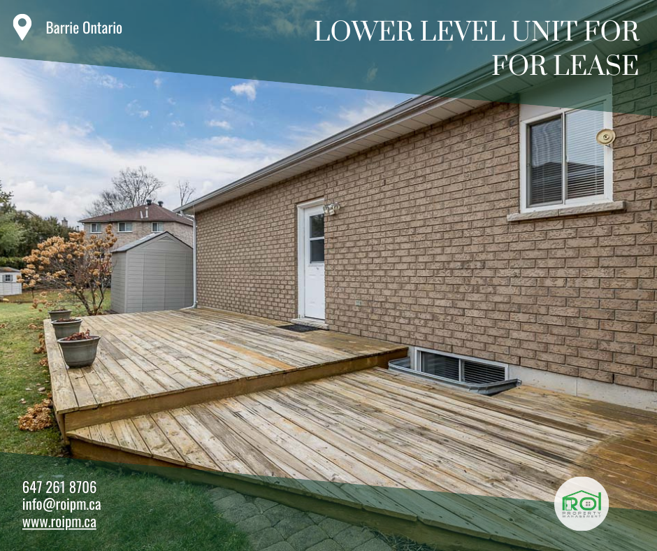Welcome to this charming 1-bedroom, 1-bathroom lower-level unit in Barrie, Ontario! This beautifully maintained unit provides a serene and peaceful place to call home. Property Details: ● Rent: $1750 ● Utilities: All inclusive ● Location: Barrie, Ontario ● Type: Apartment in Duplex ● Bedrooms: 1 ● Bathrooms: 1 ● Laundry: Laundry available in unit ● Parking: 2 spots in the driveway ● Availability: October 1, 2024 What You’ll Love About This Property: 1. Convenient Location: Nestled in a residential area, this home is just a stone’s throw from Georgian College, RVH, and HWY 400. Plus, it’s conveniently close to public transit and all essential amenities. 2. Generous Living Space: Enjoy the luxury of spacious bedrooms and ample common areas, perfect for all your lifestyle needs. 3. Abundant Storage: A large furnace room provides plenty of extra storage space to keep your belongings organized and accessible. 4. Inviting Outdoor Space: Step outside to a large deck and green space right outside your door, ideal for outdoor living and enjoying fresh air. Don't miss out on this wonderful opportunity to call this beautiful unit your home. Schedule a viewing today!