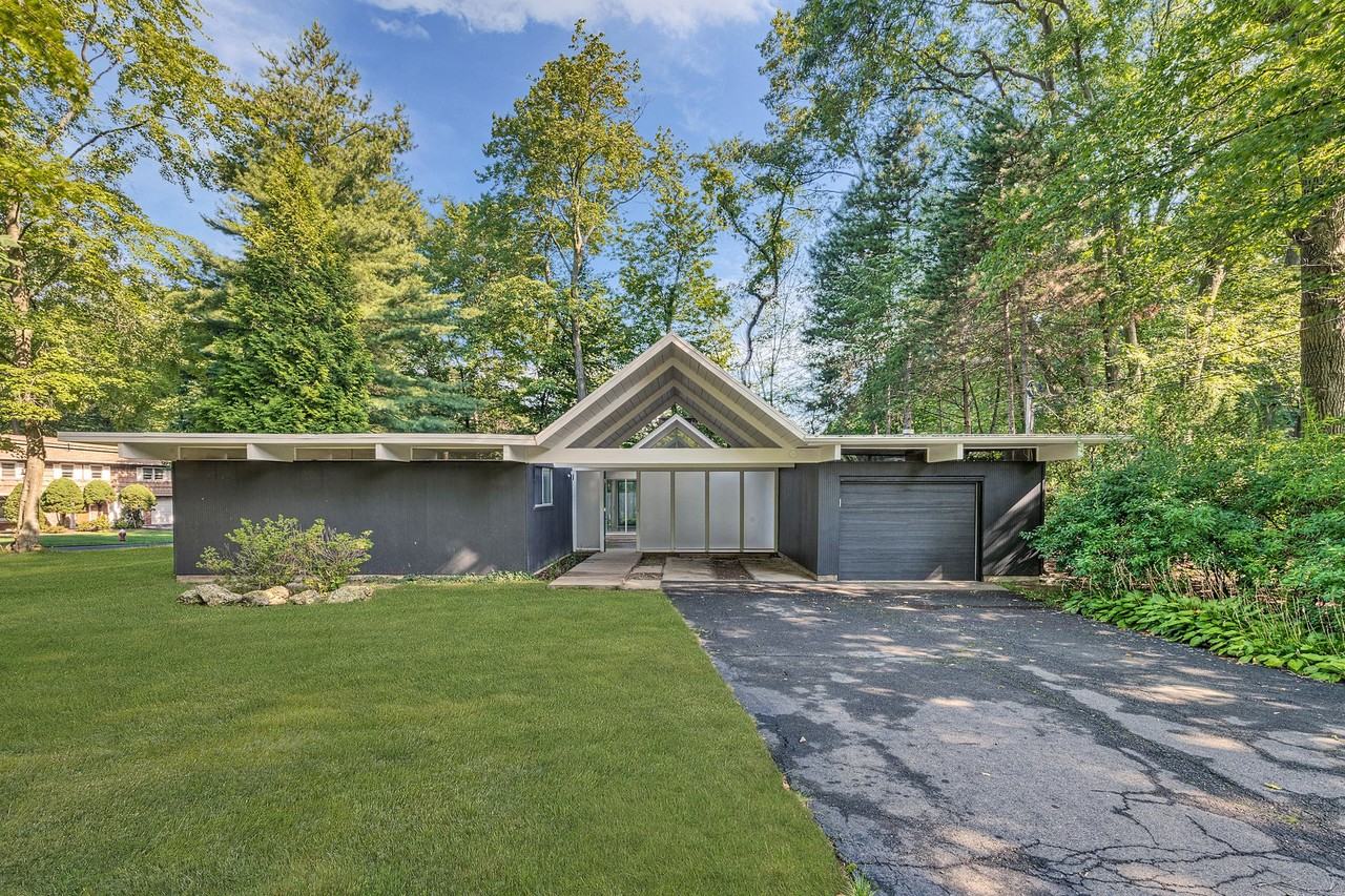 This modern home with Mid-Century charm, designed by star architects, Jones & Emmons and built by famous developer Joseph Eichler located near New York and New Jersey border, is offered the first time for rent. The widely published Eichler House is a modernist five bedroom "living sculpture. " The unique one level concept with its elements like wrap around open sky atrium, open floor living room, formal dining room, kitchen with built-in eating area, family room, updated modern bathrooms, radiant heated floors throughout, double gable with a private atrium and as well a backyard, will fulfill every contemporary lover's dream. A one of a kind Historical home like no other on the East Coast with all natural original Eichler California modern style charm. Close to Green Meadow Waldorf School, restaurants, shopping, and 30 minutes to New York City!