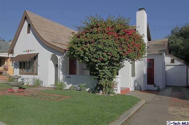 This beautifully restored and updated English Revival bungalow is located on a private cul-de-sac in Northwest Pasadena. The bougainvilla-covered porch opens to a sunny living room with pristine hardwood floors, Batchelder-style fireplace and coved ceiling with exposed beams. An arched entry opens to the dining room which features French doors to the intimate back patio and garden. The fully-updated kitchen has new hardwood floors, sleek cabinetry, new stainless steel Jenn-Air refrigerator and Bertazonni stove. A separate breakfast room with built-in cabinets could be a terrific office. Two comfortable bedrooms share a bathroom with separate tub and shower and new sink. Freshly painted inside and out. Newly restored hardwood floors throughout. Newer central a/c. An attached garage with w/d hook-ups completes this enchanting home.