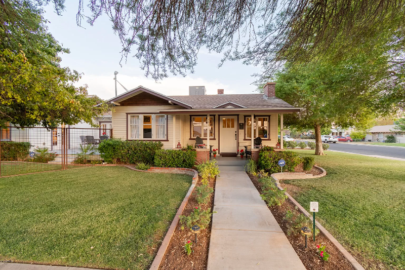 Property Id: 908313 Welcome to the historic Coronado Cottage! Built in 1925, a 2012 addition resulted in a 2400sq ft light-filled home. The house is fully furnished, including antique and modern furniture and contemporary art. Enjoy a chef's kitchen with stainless steel appliances, including a new Sub-Zero extra-large fridge and freezer. The house has a BIG finished basement - extremely rare in AZ. It makes for a great place to relax, watch a movie, play music or do yoga. It's large enough for a king-size bed, and past tenants have used it as a 3rd bedroom. Outside, relax in the dipping pool with LED lights for an evening splash. The house also has an enclosed garage where you can park, along with free street parking. A large fenced side yard, and a big grass front yard with mature trees, offer great shade while watching the stunning sunsets. Coronado is Phoenix's truly bohemian neighborhood with excellent restaurants, museums and downtown Phoenix in walking and biking distance.