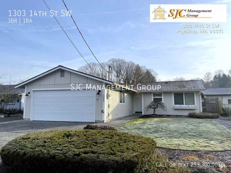 3 bedroom/1 bath rambler in high-demand downtown Puyallup. Air Conditioning, new interior paint, cabinetry, sturdy engineered wood and vinyl flooring. Brightly colored countertops in the kitchen and bathroom provide pops of nostalgia. The galley kitchen and dining area seamlessly transition into the open living space. Down the hall you will find the 3 bedrooms, bathroom and laundry room with access to the 2 car garage. A washer and dryer are provided for your convenience. Security system is intact. Tenant responsible for monitoring charges if desired. The extra-large lot offers a large, fully fenced backyard, partially covered deck and stone patio. A shed is provided for storage. Extra parking in the front and behind the fence can be used for a boat, RV, or work vehicle. For more information or to set up a viewing please contact the leasing team at SJC Management Group today! Required $85 at move in and $35/mo resident benefit packet. Pets [breed and size restrictions may apply] are allowed, pet screening required. Approved pets will incur a pet mitigation fee (between $150 and $350) at move-in + a monthly pet fee of $35-$75, max two pets. Please note showings can be scheduled online at any time. After hours or weekends, showings must be scheduled and confirmed by our staff before the end of the business day. Our business hours are Monday-Friday from 9 am to 5 pm. We are closed for all major holidays. ADDITIONAL TERMS: Required $85 at move in and additional $35 per month Resident Benefit Package offers an array of advantages. With this package, you'll enjoy convenient benefits such as regular delivery of furnace filters and additional perks designed to enhance your renting experience. UTILITIES: Not Included DEPOSIT REQUIRED: $2450