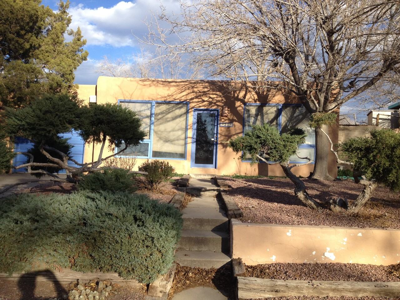 PENDING: Please contact us to be added to the wait-list. Classic UNM area pueblo-style home with hardwood floors (being refinished this month!), plaster walls, built-ins, and inviting outdoor spaces. Attached oversized garage with extra workspace and bonus storage. Open floor plan with large and sunny living area complimented by a wall of west facing windows and a fireplace. Kitchen with tiled bar / counter, gas cooktop, dishwasher, and plenty of smart cooking space. Washer / dryer and bonus storage space in laundry room. Large sunroom with GREAT natural light and wall heater not included in listed square footage - would make fantastic studio space, hobby room, or second living area. Terrific south UNM location close to good parks, Nob Hill, CNM, and UNM. Call Deacon Property Services at (505) 878-0100 to set up a showing.