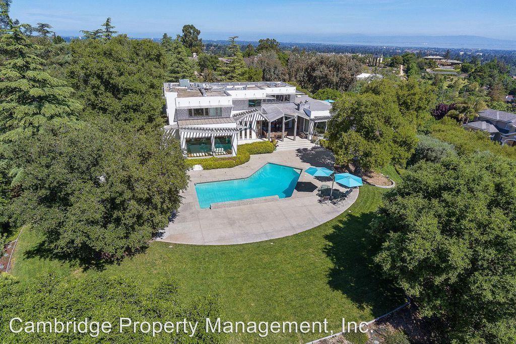 Rarely Available Los Altos Hills Modern Home With Panoramic Views - This Los Altos Hills Modern home offers the ideal in California living. Sweeping views of the bay and sleek modern lines, the home provides approximately 5359 square feet of living space set on a beautifully manicured 1.29 acre property with mature trees and a beautiful fruit orchard. The home features 5 bedrooms, 5 full baths, 1 powder room, 2 private office/libraries, large gourmet kitchen-family room, formal living room, laundry room and facility on two levels, temperature controlled wine room, cedar paneled storage room, pantry, elevator, heated pool, multiple heated patios and terraces, 3 gas-start wood burning fireplaces with powered fans, and an attached 2 car garage. Designed to maximize the incredible views, each room has been thoughtfully and meticulously designed. Main Level: Large windows with views immediately present a light filled space. The living room displays lovely details with custom colors and a central fireplace. The dining room provides an intimate yet casual feel for entertaining. A true gourmet kitchen adjoins the family room, with custom cabinetry, premium appliances, and ample storage space. The family room with its beautiful stone fireplace, provides access to the back terrace and grounds. Two private libraries with custom stone and glass designs, each with beautifully appointed cabinetry, provide a central location for computer use, reading and study. A beautifully appointed powder room with custom colors is perfectly located. A custom glass and steel staircase is showcased on this level. A separate laundry facility provides the ultimate convenience. Top Level: The upper level features four bedrooms, each with en suite bath, custom finishes and gleaming hardwood floors. The master suite includes a spa quality bath with double walk in shower, two WC’s, two separate vanities, two oversized walk in closets. Each of the other bedrooms features custom colors and designer appointments. Lower Level: A separate apartment is ideal for a caretaker or extended family members, featuring a living room, one bedroom, one full bath, and a full kitchen. Also on this level: a temperature controlled wine storage room, cedar paneled storage room, 2nd laundry area, multiple storage rooms, and a 2-car attached garage serviced by an elevator. Grounds: Enjoy California living at its best while entertaining guests in this incredible setting. The meticulously landscaped grounds are the ideal family entertaining area with mature trees providing privacy and a beautiful fruit orchard. Multiple heated patios and seating areas are perfect for friendly gatherings. All of this opulence frames a sparkling pool. Sorry no pets, (service animal welcome). Gardener included. Renter insurance required. One-year lease Available June 1st, For appointment call or text Leslie, Cambridge Property Management, Inc. : (650) 542-7293 x97-cell