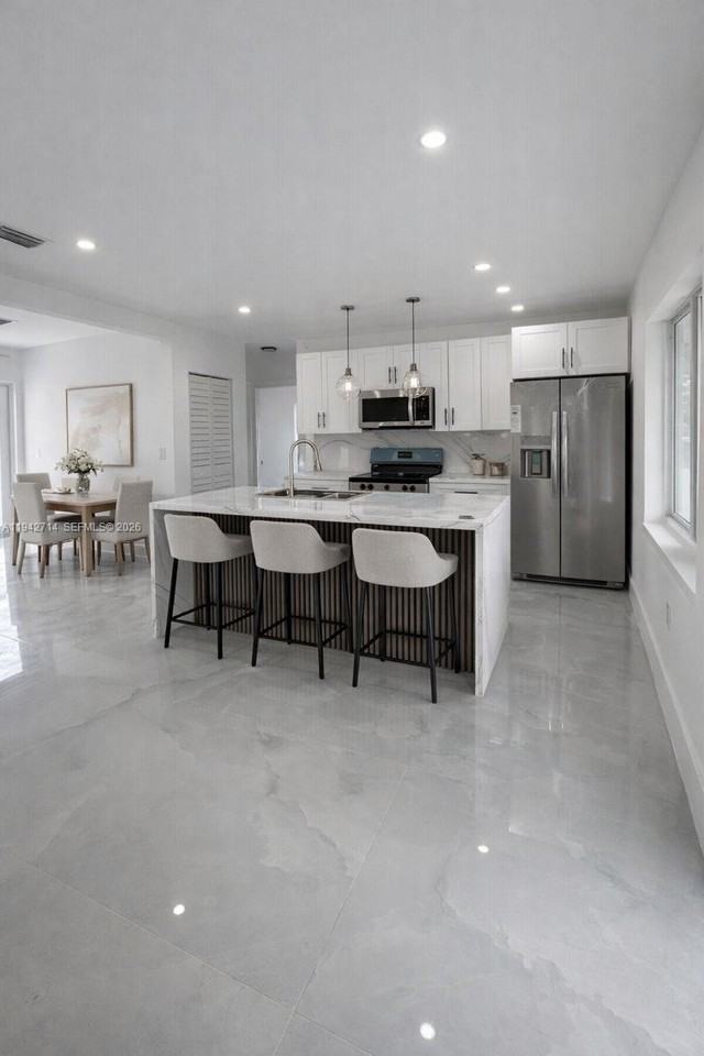 This beautiful, COMPLETELY remodeled home offers modern comfort and exceptional versatility. With new modern bathrooms, porcelin tile throughtout the home and a MODERN Kitchen gives this home a cozy feel. The main home boasts an open floor plan , recessed high-hat lighting, and freshly painted walls that create a bright, warm, and inviting atmosphere. The stunning dream kitchen is designed to impress, featuring modern white cabinetry, neutral countertops, a stylish backsplash, and a convenient snack bar—perfect for casual dining or entertaining. The bathrooms are elegantly updated with luxurious walk-in showers and sleek, contemporary finishes. Step outside to enjoy the expansive oversized yard, offering endless possibilities for outdoor living, gardening, entertaining, or creating your own private oasis. Situated in a non-HOA community, for easy approval. Ready to move in! This property combines modern upgrades with the freedom and flexibility to truly make it your own. This is a rare opportunity you don’t want to miss. Pet friendly. In addition to the main residence, the property includes a separate efficiency unit located on the side of the home, featuring a completely private entrance with no connection to the main house.