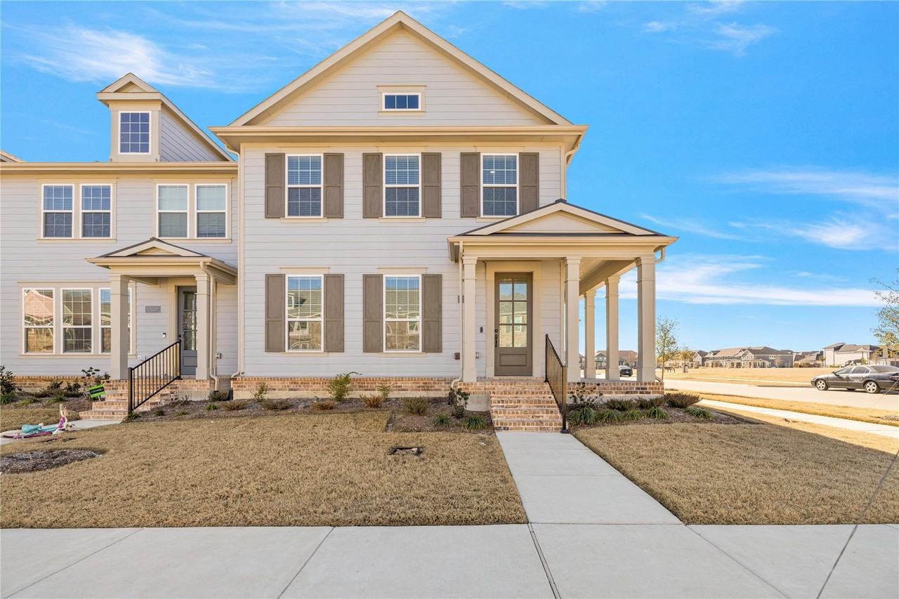 Location, Location, Location!!! Frisco ISD. Beautiful end unit townhome features a 3 bedroom 2.5 bath, wrap around porch, attached 2 car garage with 240V outlet for easy charging. Home is equipped with a refrigerator and washer-dryer for your convenience. Step inside to find over 2204 SF of comfortable living and entertaining space. The kitchen has a large quartz island, shaker cabinets, vented SS gas stove, and a walk-in pantry. The primary bedroom has a large walk-in closet and bathroom with double vanity sinks. Lawn care is maintained by management