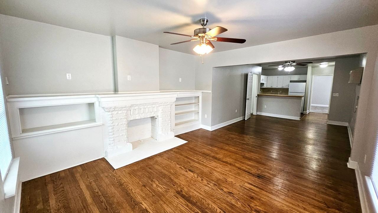 Charming one-bedroom duplex available in the heart of The Plaza District! Updated and thoughtfully maintained, this unique space blends vintage character with modern touches. You'll find original hardwood floors, updated paint throughout, and a striking fireplace that anchors the spacious living area. Large windows let in plenty of natural light, creating an inviting atmosphere. The layout offers flexibility—with a generous dining area that could easily function as a home office. The kitchen is open and functional, complete with a bar-height counter perfect for casual meals or entertaining. The bedroom is tucked quietly at the back of the home with ample room for furniture, and the full bath has been tastefully refreshed. A separate utility room offers additional storage options, and private off-street parking is included. You'll also enjoy access to a shared backyard. Water is covered with a $75 monthly utility fee. This is a great chance to enjoy everything The Plaza has to offer—schedule your private tour today!