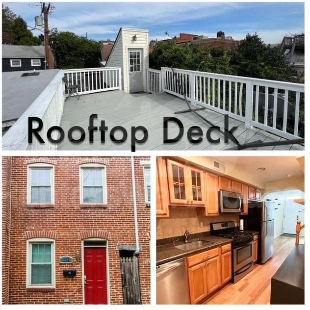 PICTURE PERFECT UPPER FELLS POINT STARTER HOME WITH ROOFTOP DECK! Main level hardwood floors throughout, spacious living room, new kitchen with stainless steel appliances & tile back splash. Main level also has family room with sliders to rear deck, 1/2 bathroom, and laundry area. Upper level Master suite with 1 full bath. 2nd bedroom has 1 full bathroom in the hallway. 3rd level has interior stairs that leads to a rooftop deck with amazing city views! No smoking in the property. One cat allowed on case by case basis with a $350 non-refundable deposit.
