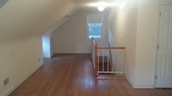 We are looking for a new roommate for the upstairs loft in our place, a small house in the Waverly Hills neighborhood in Arlington. Honestly, the loft is huge (450 ft.²), has its own bathroom (30 ft.², not including the shower) and is a clotheshorse's dream, with two walk-in closets (50 ft.², 15 ft.²) and two recessed dressers. With its own door at the foot of the stairs, you'd have a lot of privacy, but also free use of the living room and kitchen downstairs. Rent on the space is $875 and utilities are around $100 a month. The loft is vacant and available now, but the first month's rent isn't due until July 1. There is a $600 deposit, and the landlord likes us to mow the lawn in the summer and rake the leaves in the fall. You'd be living with two young professional dudes. We are sociable, like to joke around, and get out of the house, but we don't really throw parties here, and the house is generally pretty quiet. Lastly, our place is very well located -- 10 to 15 minutes' walk to Ballston Metro, and a stone's throw from Custis Trail and I-66. Harris Teeter, Giant, Trader Joe's, and Whole Foods are all very close, Washington & Lee High School is a few blocks away and has a great track and swimming pool, the Rosslyn - Ballston corridor is full of great restaurants and bars, and the city proper really isn't that far. If you own a car, you can have the driveway. If you're interested, please write and tell us a little bit about yourself, and we can arrange a visit. Our ideal roommate is a 25-to-35-year-old professional mensch of any gender who pays their bills promptly.