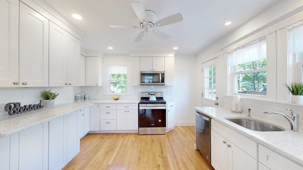 Located on a quiet, tree-lined street in one of Milton’s most desirable neighborhoods, this charming 3-bedroom, 1-bath single-family home is full of natural light and cozy vibes. Step into the sunny front room — the perfect spot to relax with a book or enjoy your morning coffee in the breeze. The living room features a working fireplace and flows nicely into a separate dining area, great for everyday living or the occasional dinner with friends. The renovated kitchen has a clean, modern feel with white shaker cabinets, quartz countertops, and a convenient eat-in bar. Upstairs, you’ll find three comfortable bedrooms with beautiful hardwood floors throughout. Well-maintained and move-in ready, this home offers a peaceful setting while still being close to everything. DON'T APPLY THROUGH AVAIL. CALL/TEXT US AT 617-765-4219. Listing is provided by Lin Xu - Dream Realty ****