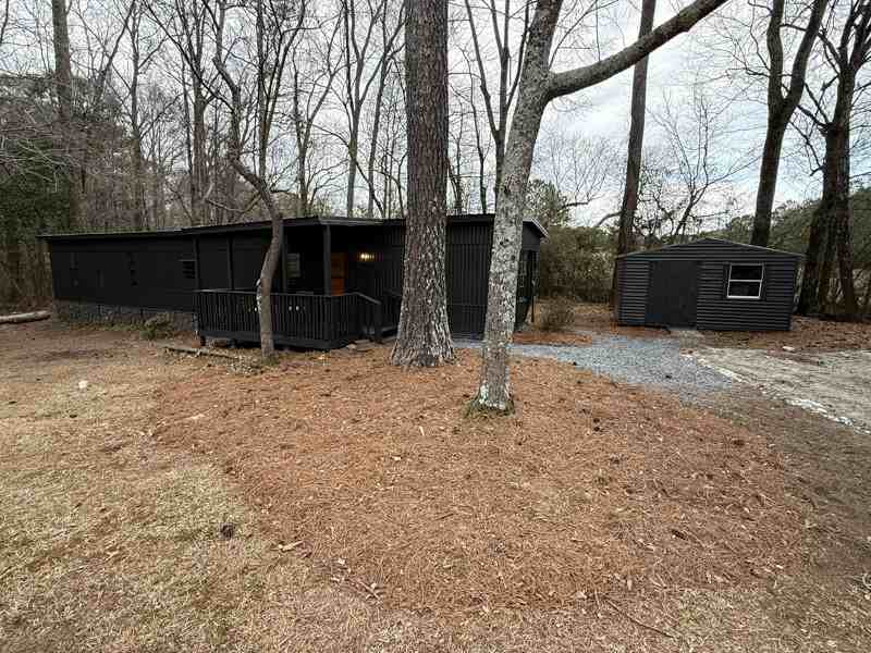 This fully updated 14x70 home offers 2 bedrooms and 2 bathrooms in a quiet, private setting. Thoughtfully renovated with modern finishes and warm wood accents throughout. Interior Features: Spacious primary suite with freestanding soaking tub Dual vanities in primary bathroom Second full bath with custom tiled shower Updated kitchen with stainless steel appliances Open living area New flooring throughout Modern lighting and ceiling fans Exterior Features: Covered front porch Large rear deck overlooking private yard Separate storage building Freestanding home on private lot