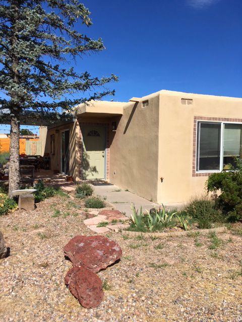 Adorable, sweet two bedroom in established and convenient neighborhood. Super sunny, bright and happy, this home features stainless steel appliances, granite counters, wonderful warm wood floors, double sink in bathroom, and a fantastic large patio with pergola to enjoy the outdoors. Custom stone fireplace in living room adds something special. Completely private back yard with high wall enclosing front yard. Single car garage has been converted into a workshop/storage area. One year lease. Dogs considered. Available September 1. Security deposit $1495.00