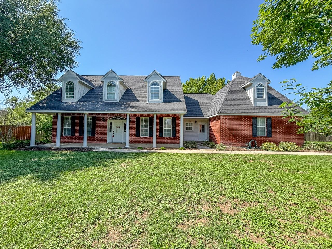 Discover this charming Ranch-style home nestled on just over half an acre within a secure gated community. Offering ample space for entertaining, this residence features four bedrooms plus a versatile flex room, perfect for a home office or additional living space. The home boasts two spacious living areas, a formal dining room, and a cozy breakfast nook. The large, entertainer's kitchen is a chef's dream, complete with a buffet serving bar, abundant cabinets, and an island for food prep. The inviting living room showcases a fireplace and built-in shelves, creating a warm and functional gathering spot that flows seamlessly into the kitchen and breakfast area. Upstairs, you'll find two Jack-and-Jill bathrooms and vaulted ceilings in the bedrooms, enhancing the sense of space and comfort. The primary suite is conveniently located downstairs and offers direct access to the backyard and pool, along with his-and-her vanities and a walk-in shower—your private retreat. Enjoy outdoor living and relaxation in the expansive backyard, perfect for gatherings or quiet evenings. This home combines comfort, style, and functionality in a desirable gated community setting and nestled at the end of the cul-de-sac.