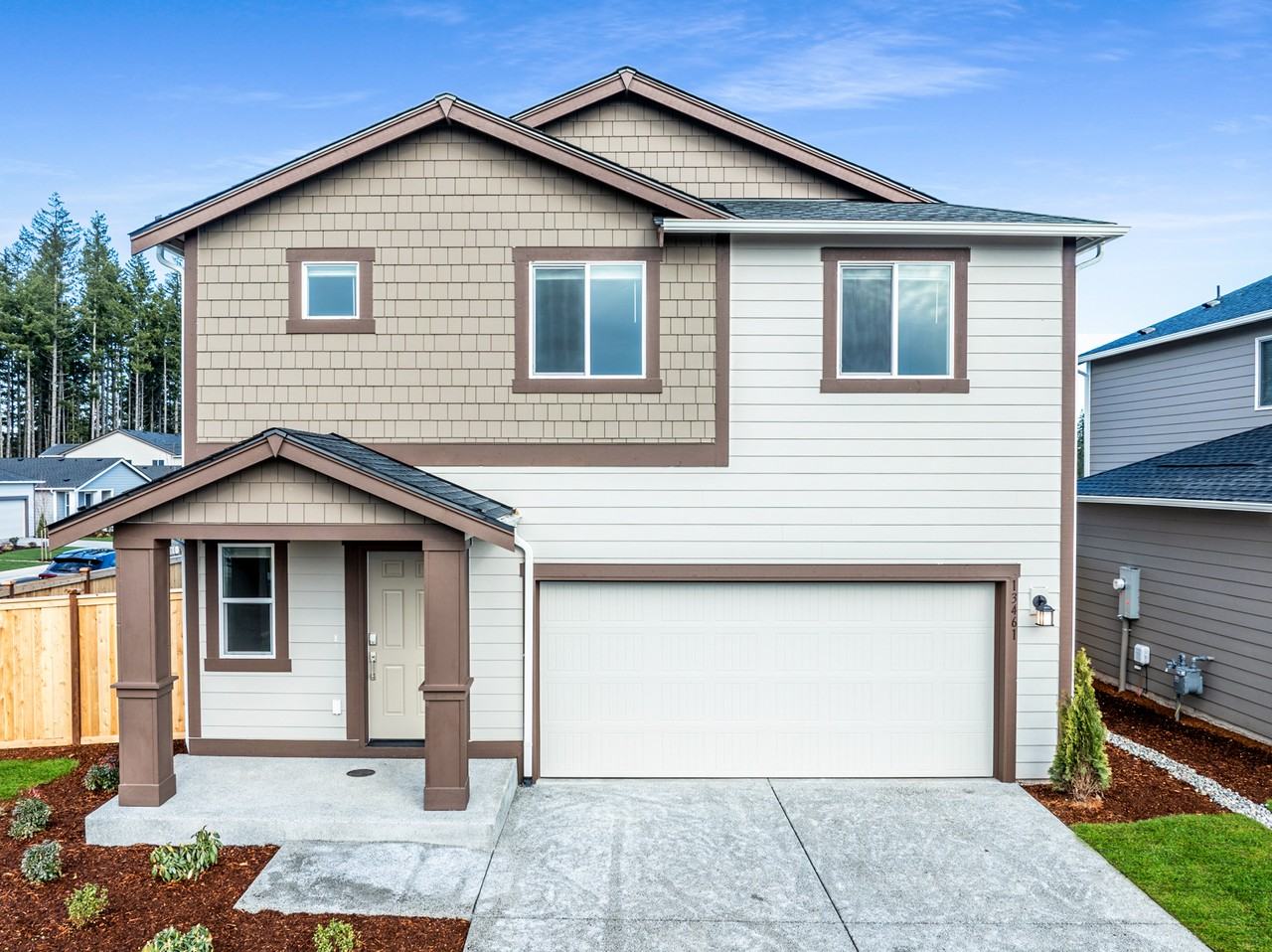 BRAND NEW construction on huge corner lot with upgrades and AC! On the main floor you'll find wide plank flooring, a spacious open floor plan and abundant natural light. The great room flows into the chef's kitchen with white quartz counters, new stainless steel appliances with gas range, a walk in pantry and upgraded crown molding cabinetry. Upstairs there is a large primary bedroom with a double sink en suite bathroom and huge walk-in closet. The second floor also has three additional bedrooms with a full bathroom, oversized laundry room and loft space. Includes high efficiency heating and air conditioning, high end marble bathroom countertops and new cordless window coverings throughout. New washer/dryer included. This premium corner lot is one of the biggest in the neighborhood and is elevated above the single story home behind it providing exceptional privacy. The spacious backyard with patio is barbecue ready, has new eco landscaping and is fully fenced. Plenty of space for storage and parking inside the two-car garage equipped with EV charger. Quaint and quiet location where Puyallup, Graham and Orting meet. Come and see the beautiful family friendly Daybreak community featuring wide streets, sidewalks and parks. This convenient location is close to all amenities and within the sought after Orting School District. **This address is so new the website incorrectly lists city/zip. Correct address is 13461 195th St E Graham, WA 98338. Tenant covers all utilities and yard maintenance. Must abide by HOA standards. Proof of income must be 3x monthly rent, $4,300 deposit. Credit score 620+, no previous history of evictions or bankruptcies. Pets and smoking not permitted. One household per lease. Each tenant over the age of 18 must complete a rental application. Applications must be submitted and reviewed BEFORE requesting a tour.
