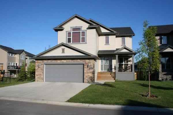 The main floor features a spacious living room with gas fireplace and open to above ceiling and south facing windows. An open dining room and kitchen are ideal for entertaining. The kitchen includes a large island with eating bar, beautiful wood cabinets, a small desk area, and a pantry that walks-through to the mud room and garage, making getting your groceries in easy. There's an open area that works as a formal dining room or a home office. A separate laundry room with raised flooring for the washer/dryer, a half bath, and plenty of closet space complete the main floor. The main floor is mainly hardwood with a tile entry and carpeted living room. The dining room exits to a deck with a natural gas hookup for a BBQ. Upstairs, the master bedroom has generous south and west facing windows and will accommodate a king bed. The master bathroom includes a jetted tub, separate shower, separate water closet, and a walk-in closet. The two additional bedrooms feature generous closet space, and there is a large bonus room and a full bathroom. The hallway partially looks over the living room and the stairway is wider than usual. The home is situated on a green space with a pathway to one side and a pond and green space behind, giving you a bit extra space. There is a generous front deck perfect for relaxing or watching a summer storm. The back of the house features a deck off the main floor, as well as a patio off the walkout basement. There is a 24' wide two car garage. The unfinished basement has a high ceiling, a large window, and is nearly completely open space. Chestermere is a great place to live. It is quiet, but close enough to Calgary for easy access to work and play. The home is close to pathways, playgrounds, and a waterfall. Restaurants, ice cream, a grocery store, and a Macs are all within walking distance. A few minutes drive can reach more dining, shopping, a library, a sports complex, and more. The lake is used year round from the newly completed beach, boating, and summer festivals, to racing quads on the ice and fishing all year round.