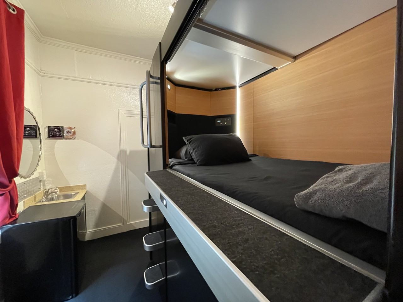 Are you new to San Francisco? A traveling nurse? Studying for a semester abroad, seeking adventure? Interning for a tech giant in the city? Or are you just on a journey of self-discovery and need a place to call home? Whatever your reason for traveling, Music City SF is your creative home away from home fully equipped with guitars, record plaques, and authentic Rock n' Roll vibes. Starting at $915/month, our double rooms are the best option for those who want more room and fewer people. This room accommodates two guests. The room comes with a sink/mini-fridge, chair/desk workspace with charging station, locker & closet space, bedside reading lamp and charging station, and free wifi. All utilities included. Our incredible housekeeping staff maintains the building and its facilities on a daily basis. Bathrooms and showers, all single-person use, are on each floor and shared among the residents. Rental Rates as follows below: Two Bed Shared Capsule Room 2-5 month lease: - $915 (Upper Bunk) - $945 (Lower Bunk) 6 Month lease: - $895 (Upper Bunk) - $915 (Lower Bunk) Contact us today and schedule a tour! Apply here: https pacificequitieswest managebuilding com Resident rental-application Historical building, reinforced masonry. No elevator. Home of the San Francisco Music Hall of Fame!