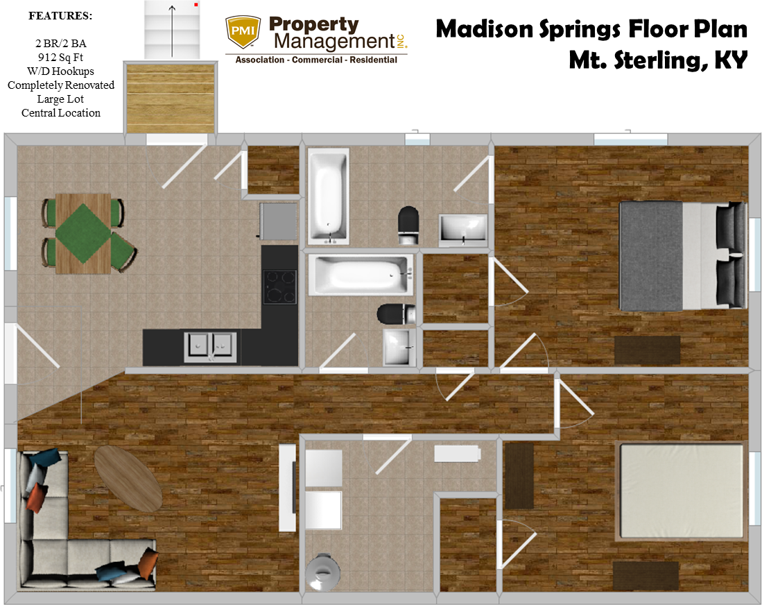 2-bedroom apartments at 136 Madison Spring cost about 29% less than the average rent price for 2-bedroom apartments in Mount Sterling.