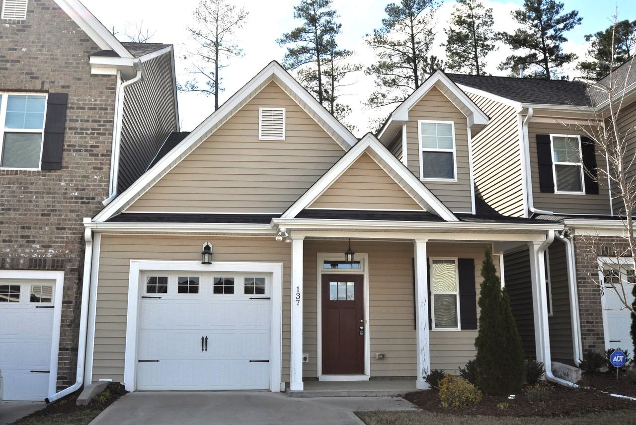 ABOUT THIS HOME This luxury RTP townhome is available for immediate occupancy and is sure to please the most discerning of resident. Park in your private garage and upon entering through the covered front porch, you'll surely fall in love with the casual elegance this home exudes. The first floor is full of natural light that's only accentuated by gorgeous hardwood floors and 9' ceilings throughout. The foyer opens on the right to an exceptional kitchen showcasing granite counters, loads of cabinet space, a breakfast bar, a stainless undermount sink and a suite of sleek stainless-steel appliances to top it all off (including a gas oven). The open floorplan at 137 Zante Currant Road lends itself to effortless entertaining with a dining area that seamlessly transitions from the kitchen on one side, to a spacious family room on the other with direct access to a private, rear patio on the other. Before heading upstairs, be sure to visit the coveted first floor primary suite showcasing a tray ceiling and a walk-in closet. Its private bathroom features dual sinks on an elevated, marble-topped vanity as well as a custom walk-in, tiled shower. Upstairs you'll find 2 more bedrooms; both generously proportioned and with easy access to a full hall bathroom. PROPERTY FEATURES Availability: Available for immediate occupancy Pets: Sorry, no pets allowed First Floor Primary Bedroom: Coveted first floor primary bedroom with a huge walk-in closet and luxury bathroom All Appliances Included: Sleek stainless-steel refrigerator, high-efficiency front-loading washing machine and dryer included for resident's use Attached Garage: Private, 1 car garage with interior access means you'll never be left without a parking space or stuck out in the rain unloading groceries again! Lease Term: 12 and 24 month lease terms available No Yard Work!: Take back your weekends! Rent includes year-round lawn and landscaping maintenance NOTES: We do not advertise on Facebook or. Applications must be completed at SPMtrianglerentals com $50/adult non-refundable application fee