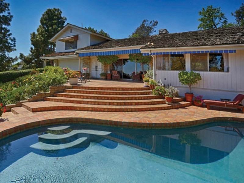 Rare original lease property that captures the simplicity of comfortable living with privacy, jetliner views and a pool. This 2-story ranch-style home is poised above the world famous Sunset Strip on a commanding approx. 19,000+ sq. ft. lot with Southwesterly views. Located behind gates up a drive and flanked by mature trees, this rustic and classic home features a large open living room with vaulted ceilings, a dramatic stone fireplace, glass doors leading out to a large patio and your pool. There is a den with brick fireplace and country kitchen with dining area overlooking the pool and views. 2 bedrooms and 1-bath upstairs; 1-bedroom and bath on main floor and a 1-bedroom, 1-bath attached guest suite with its own entrance. Additional features: hardwood floors, laundry inside, spa, wrap-around patios and a grove of fruit trees. An incredible opportunity to experience the California lifestyle in the Hollywood Hills. Available furnished or unfurnished. Additional rate for furnished.