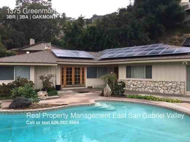 This stunning 3 bedroom home is located in the Verdugo Mountains near the Oakmont Country Club in Glendale. The home has a beautiful swimming pool and yard with amazing mountain views. The home has been updated with a sleek kitchen with high end stainless appliances. The living room has hardwood floors, fireplace and french doors. There is an additional family/TV room perfect for relaxing. There is a large master bedroom suite with a very sizable walk in closet and master bathroom. The home has many great additional amenities which include a 2 car garage, nest thermostat, solar panels, central ac/heat, recessed lighting and much much more! Set up a time with Real Property Management to view this amazing property. Small pets under 15 pounds are allowed with additional pet deposit. Move in costs: $4750 Rent $4750 Deposit - Due upon lease signing $175 Inspection Fee $35 Application Fee