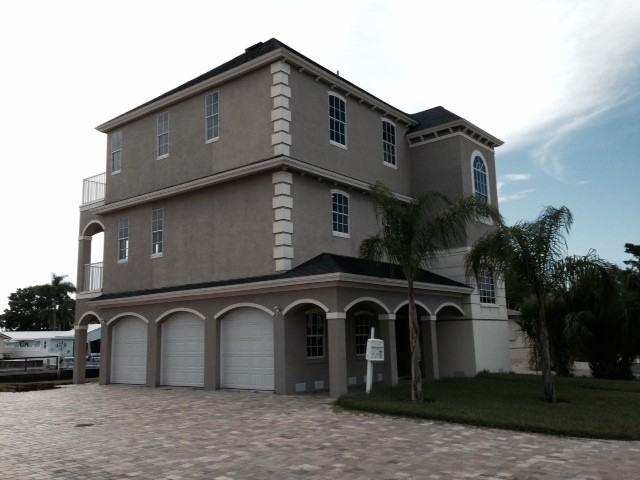 Magnificent New (2016) waterfront (canal) home with a dock and easy access to the Gulf of Mexico. This Beautiful custom built 3 story home has lots of special features including upscale kitchen, curvy hallway, open floor plan, tray ceiling, bamboo – tile - carpeted flooring. Balconies on the 2nd and 3rd floors tower over the nearby homes offering a spectacular view of Florida sunsets. The large paver driveway leads to a Huge 3 car garage with lots of extra room for storage, workshop or added living space. There are 3 sets of French doors leading to the backyard giving lots of light. Oak staircases and handrails. The down stairs foyer gives access to beautiful wood staircase leading to the 2nd floor and its open floor plan which includes a living room, fireplace, dining, large kitchen and 3 sets of French doors leading to the balcony giving you an excellent view of the backyard, dock, boat lift, and canal leading to the gulf. The upscale kitchen with wood cabinets, granite counters, stainless steel side by side fridge, built in oven and microwave, surface mount stove, and lots and lots of cabinet and counter space. The 3rd floor has a curvy hallway leading to the 3 spacious bedrooms and balcony.