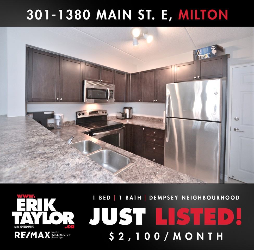 JUST LISTED!! ๐103-1380 Main Street, Milton ๐ฒ2100/month ๐ 1 Bed ๐ 1 Bath ๐ 626 sq ft ๐ข Ground Level Condo ๐ 1 Underground Parking Space. โ Stainless Steel Appl โ Ensuite Laundry โ Neutral Paint Colour Throughout โ Easy Access To Highway 401 & 407 ๐ Walking Distance To Grocery Stores, Library, Arts Centre & Leisure Centre. Send Us A DM Book A Showing! ๐ฒ (289) 971-0533 ๐ www eriktaylor ca
