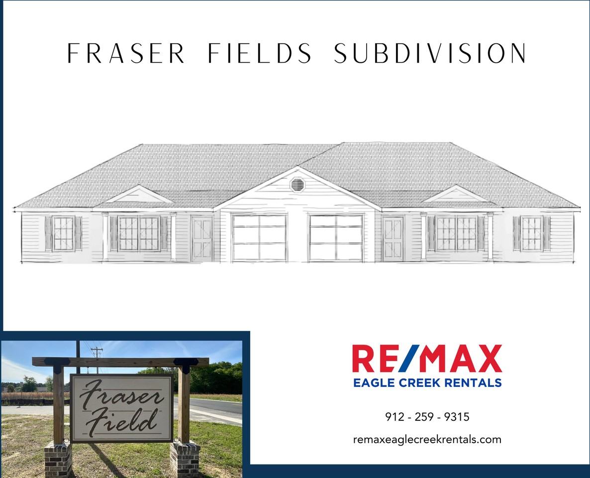 NEW CONSTRUCTION!! This 3 bedroom, 2 bathroom townhome is approx. 1,200 SQFT and located in the quiet and convenient subdivision of Fraser Field, just minutes away from town. The Stonecrest floorplan features a spacious living room with ample space to entertain guests and a nice kitchen with a breakfast bar, appliances, and a dining area. Beautiful LVP flooring throughout, an attached one-car garage, and a covered front porch. The master suite offers a walk-in closet and a private full bath w/ a double vanity. Two guest bedrooms share a full bath; one of the guest rooms can be used as an office or nursery if needed. Enjoy a warm sunny day while walking on the trail, fishing in the pond, or grilling out on your new back patio. Yard maintenance included. * Interior Pictures are not of exact unit but one with the same floorplan** Call RE/MAX Eagle Creek Rentals today at 912-259-9315 to pre-lease one of these sought after units! Virtual Walkthrough: https tour pivo app view bd73cff0-b028-4a91-bb89-d10e3e941265