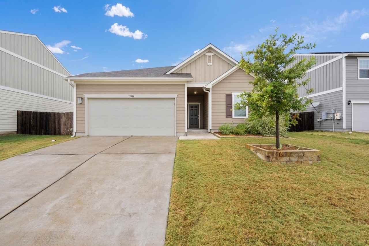 Welcome to 13904 Mark Christopher Way, a well-maintained 4-bedroom, 2-bath single-level home located in a quiet suburban community in Manor, TX. Designed for comfort and convenience, this home features a bright, open floor plan with no interior steps, recessed lighting, ceiling fans, and a smart thermostat. The spacious kitchen includes granite countertops, a large island, breakfast bar, pantry, and multiple dining areas—perfect for both everyday living and entertaining. The primary bedroom offers a walk-in closet and private en-suite bath, while three additional bedrooms provide flexibility for guests, work-from-home space, or family needs. Interior finishes include vinyl flooring and carpet, and the home comes equipped with a full suite of appliances: refrigerator, electric range, microwave, dishwasher, disposal, and in-unit washer/dryer. The laundry room is conveniently located inside on the main level. Enjoy outdoor living with a covered patio and private, fenced backyard situated on a level lot with front and back yard space. The attached two-car garage, paved driveway, and front-facing entrance provide ease of access and ample parking. Located in a community that offers a clubhouse, pool, sidewalks, and street lighting, you're just minutes from local parks, schools, grocery stores, and popular dining spots in Manor and East Austin. Pets are welcome, with restrictions on size—cats and small to medium dogs are allowed (no large dogs, please). Tenants will be required to sign up for the Resident Perks Program at $25/mo per household.