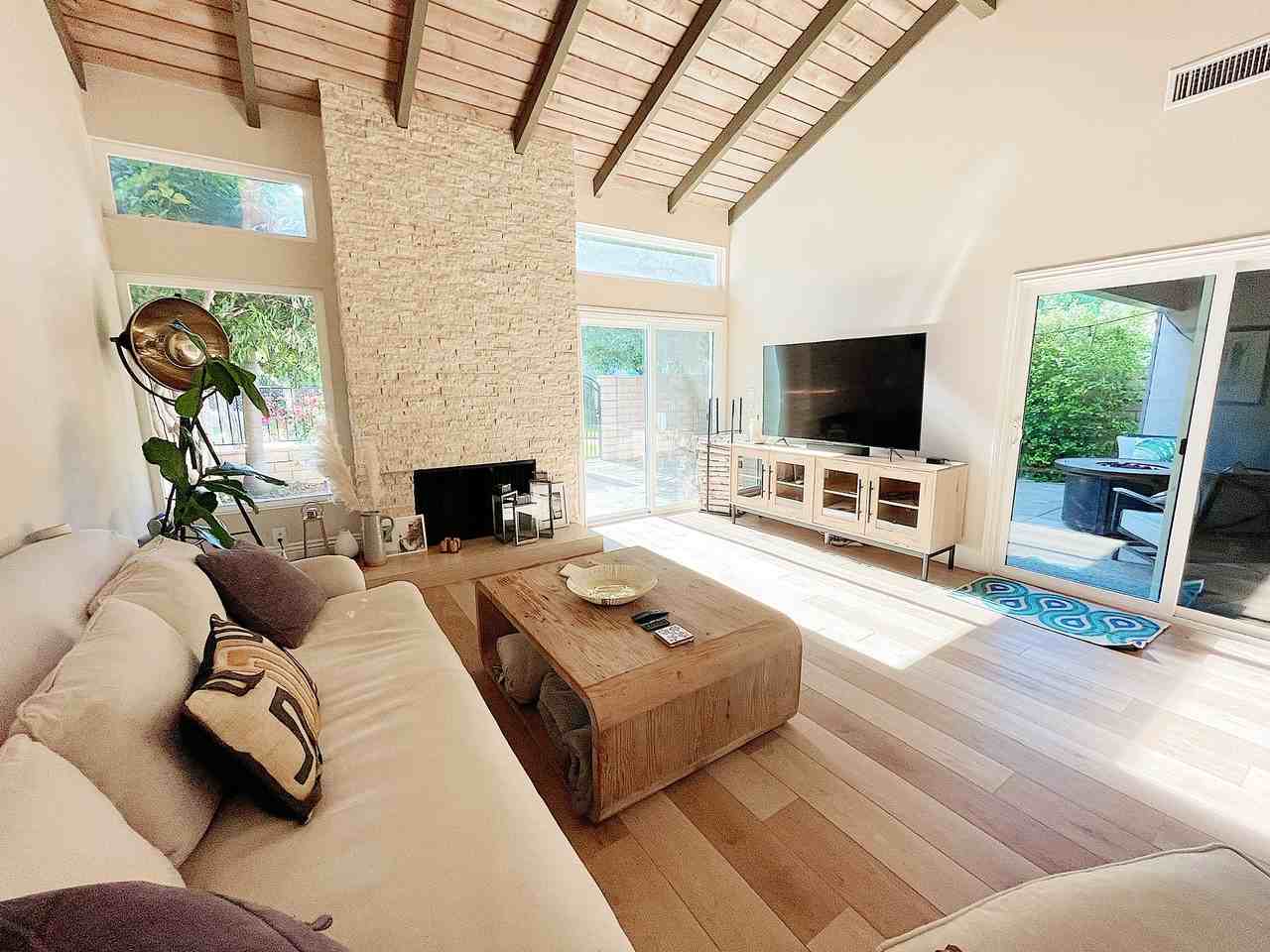 3 BEDROOMS + LARGE BONUS ROOM (can be used as a FOURTH BEDROOM) Turn-key rental home located in Irvine’s prestigious University Park. This 3 bedroom(+ XL Bonus) 2 bath home sits on the premium corner lot used by the original builder as the model home, with green park views from every window! 2268 square feet of generous open-concept living space features vaulted ceilings, brand-new hardwood floors, recessed lighting & a dramatic travertine stone fireplace. The gourmet kitchen boasts upgraded stainless appliances, quartz countertops, stylish glass & marble backsplash and rich espresso cabinets. Convenient downstairs master suite features an oversized bedroom, dual mirrored closets and spa-like bathroom. Head upstairs & discover TWO additional bedrooms and a very spacious BONUS room, that can accommodate a stunning home theater, gym, or anything else you can imagine. Relax outdoors on one of the dual patios. Other features include: double-paned windows & sliders, two panel doors, upgraded baseboards and designer recessed lighting. Modern HVAC system with new furnace + ducting + air conditioning! The finished garage offers direct home access, and dedicated laundry facilities. This home truly has it all & the attention to detail really shows! Located in the award winning UNIVERSITY HIGH school district with easy access to Hwy 405/5/55/133/73. The home is ideal for lovers of nature and green spaces, with direct access from the yard to miles of walking trails in University Park & the neighborhood is conveniently located adjacent to Mason Regional Park and Turtle Rock Open Space Preserve. Walking distance from dining, coffee, and groceries in University Park Center, and just 2 miles to UC Irvine and 7 miles to the Beach!