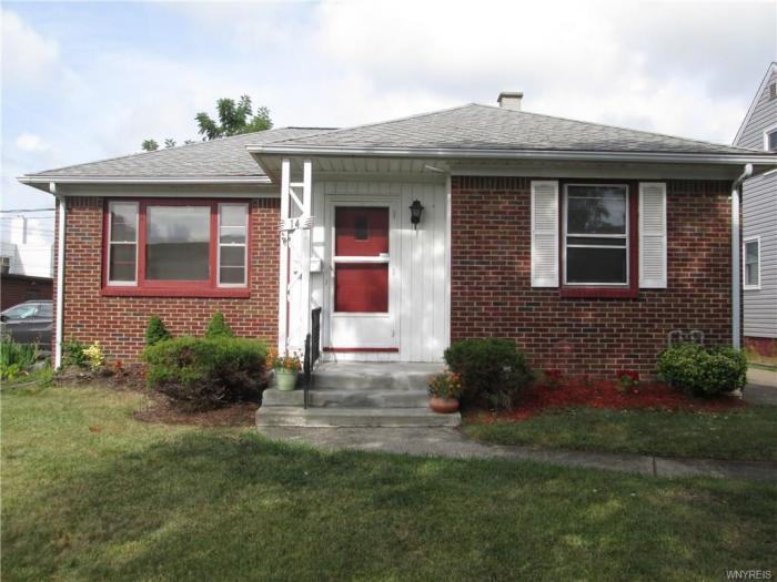 Opportunity to Rent a 2 bedroom brick home in an ideal location off Kenmore Ave. and a short walk to Colvin Ave. with restaurants, shopping and bus line. Spacious living room, dining room and kitchen with breakfast area contribute to the charm. Bedrooms and full bath complete the first floor. Basement is finished partially with separate room for home office, etc... work table included in workshop area. Nice size yard with 1.5 car detached garage. Provided by Listanza ID 25811246