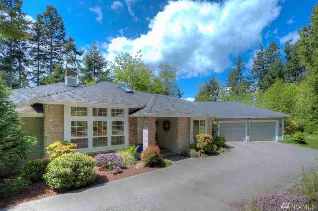Light filled level-entry home on acreage. Nestled at road's end with beautifully landscaped and natural grounds. Kitchen, informal dining, family room with French doors to patio. Formal living and dining too. Room to room propane fireplace. Master suite opens to patio as well. Three car garage plus extra storage room.