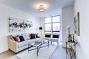 The gourmet kitchen equipped with sleek black stainless steel appliances and floor-to-ceiling windows enhances modern living in an urban setting. With 117 detailed photos available, visuals offer potential renters an extensive overview of the lifestyle amenities. The combination of urban convenience and modern design adds significant appeal.