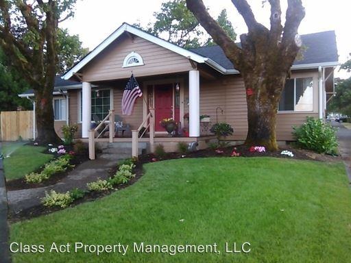 Lovely Restored Craftsman Home with Surprising Features. Pets Welcome - This amazing home is one you need to see in person to truly appreciate. This home is a Craftsman-style that was lovingly restored by a father for his daughter to live in. She loved the house as her own, but circumstances have forced her to move. Now we are looking for a special family who will care for this home as if it were a family heirloom to be passed down to generations. As you approach the the home, the first thing you will notice is the meticulously manicured lawn and landscaping framed by large oak trees that provide shade during the summer. The front porch is embraced by columns supporting a portico providing protection from the elements. As you enter the front door you are greeted by a welcoming living room with wainscotting on the walls and a cream-colored carpet. You will begin noticing some of the special touches that the father installed including natural wood frames around the doors, flowing drapery resembling silky linen, and a ceiling fan to keep you cool. On your right you will see a magnificent dining area with hard wood floors, large windows letting in soft light, a period-correct chandelier, hand carved built-in china cabinet with a kitchen pass through and additional storage for your china, and wooden beams on the ceiling resembling something you might see in a Clark Gable movie. As you pass through the dining room you will enter the tastefully remodeled kitchen bringing modern conveniences while still retaining the original charm of the Craftsman period. You will notice the marbled counters, the modern appliances and gas stove, the muted color palette that blends perfectly with the walls and counters and floor, and other little touches like the high-end hardware and moldings. If you look closely you may discover a hidden surprise...what looks like a wall is actually a marble table that folds down and reveals shelving for spices and knickknacks! By having a folding table installed into the wall, you can fold it up out of the way when you need the space, or fold it down when you want to eat breakfast or need additional room for displaying food during large gatherings. From the kitchen you can access the laundry room which doubles as a mud room with storage cabinets. The laundry/mud room leads to an oversized single-car garage which has shelving and space for a workshop. Next is the family room which is a special retreat. It has wood-paneled walls, wood Craftsman beams on the ceiling, walnut flooring with wide planks from old growth trees, and a gas freestanding fireplace with a rock mantel. Imagine coming into this haven and with the flick of a switch turning on the gas fireplace and snuggling up surrounded by the warmth of fire and natural wood. Past the family room is the master suite. Continuing the Craftsman theme, this bedroom sanctuary has dark wood paneling, dark wood beams on the ceiling, a period specific light fixture, and a romantic wood Armoire for your clothing and delicates. What master suite would be complete without a private bath? Through the bedroom is an exquisite bathroom with white cultured marble, stainless steel hardware, custom cabinetry, and a full-sized shower and tub. Down the hallway is the second bedroom which has wainscotting on the walls and a cream-colored palette. A second full bathroom is located on the main floor and features modern updates, wainscotting, and a continuation of the cream color scheme..