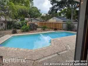 JUST IN TIME FOR SUMMER!! Centrally located in the highly acclaimed Oak Meadow neighborhood, this 3/2/2 beautiful single story rental home with IN-GROUND POOL features an open floor plan with living/dinning combo, wet bar w/built-in shelves, office or secondary living room, large kitchen w/island with seating and solid countertops, all stainless steel appliances (new range installed April 2021) and a 3-door refrigerator. Spacious master bedroom with views of the pool includes a master bath with double vanities, his/her walking closets, and walk-in travertine shower. Walk out to the professionally maintained (included in rent) in ground pool and beautiful landscaped backyard from the living room or master bedroom. Enjoy the neighborhood amenities including pool, tennis courts and playground. Easy access to I-10, Loop 1604 and Wurzbach Pkwy, shopping, restaurants and great schools. This house won't be long in the market!! No Cats Allowed