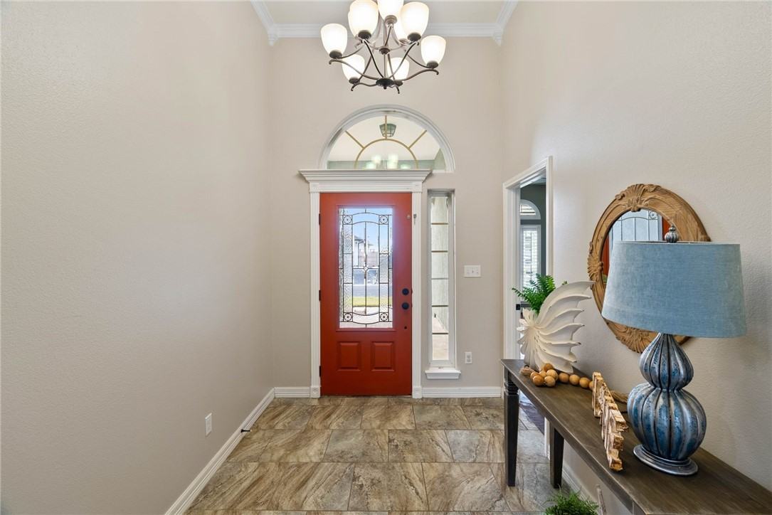 Live the Island Life Just One Mile From the White Sand Beaches of Padre Island! Built in 2014, this beautiful stucco home blends coastal comfort with upscale design. Offering 4 bedrooms, 3 full bathrooms, and a private office, the open-concept layout is ideal for modern living. Tile and stained concrete flooring flow throughout, pairing durability with style. The giant chef’s kitchen is the heart of the home—featuring a 5-burner gas cooktop, custom cabinetry, a large center island, and an extended breakfast bar. It opens seamlessly to the main living and dining spaces, all framed by high ceilings, crown molding, and custom wood plantation shutters. Retreat to a spacious primary suite complete with a dual-sink vanity, relaxing garden tub, and tiled walk-in shower. A generously sized junior suite with its own private ensuite bathroom is perfect for guests, in-laws, or a college-age family member. Step outside to your own private paradise. After a long day on the beach, unwind in the sparkling saltwater pool (maintenance included!) featuring a splash pad and a three fountain water feature. An expanded cool deck, large pavestone patio, lush landscaping, and a spacious covered patio offer endless options for entertaining or soaking in the island sun. Priced right and located just one mile from the pristine white sands of Padre Island—don’t miss your chance to claim this coastal oasis and experience true island living!