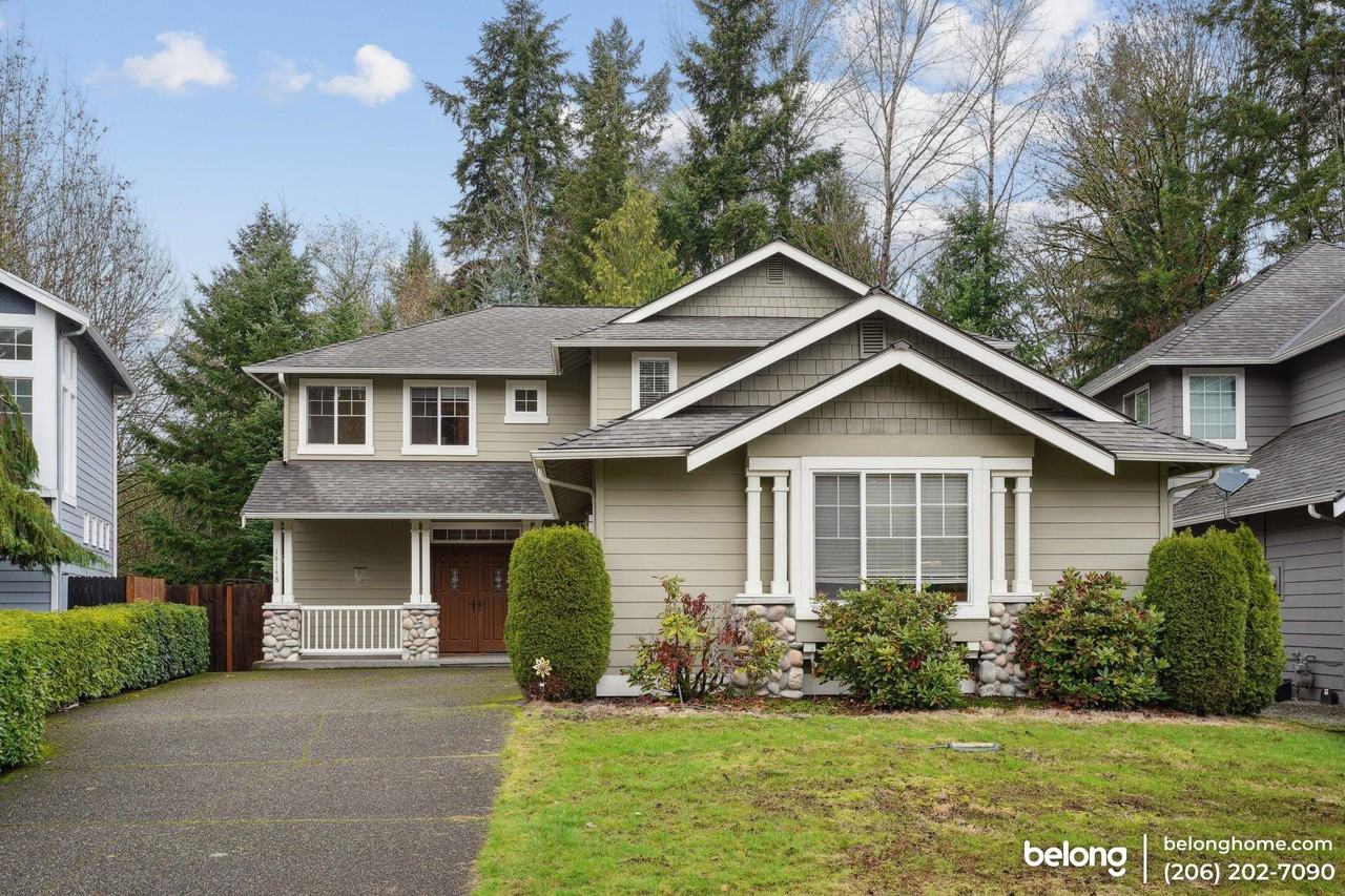 Fall in love with this beautifully updated Murray Franklin gem, offering a thoughtful layout and modern upgrades throughout! Spanning 2,150 sq. ft., this home features 4 spacious bedrooms, 2.5 baths, and a versatile mix of formal and casual living spaces. The bright, open kitchen showcases stunning Cambria quartz countertops, a center island with breakfast bar, and updated appliances, flowing effortlessly into the family room with a gas fireplace and custom built-ins. Acacia hardwoods lend warmth and charm to the main level, while plush, newer carpet enhances the upstairs retreat. The primary suite serves as a private sanctuary with ample closet space and a spa-like ensuite. A professionally designed backyard is the highlight of the outdoor space, with a covered patio and serene greenbelt views perfect for unwinding after work or as a break when working from home! Practicality meets luxury with a huge 3-car garage offering abundant storage for vehicles, bikes, and more. Located in the desirable Gables at Elliott Farm community, this home grants access to neighborhood trails, a tot-lot, and a sports court. Commuters will appreciate the convenience of nearby freeways, SeaTac Airport, and major business hubs on Seattle’s Eastside. With restaurants, shopping, golf courses, and outdoor recreation just minutes away, this home offers both modern convenience and a tranquil setting for creating lasting memories! Note: Fireplace is for decorative use only and cannot be used without consent from Belong.