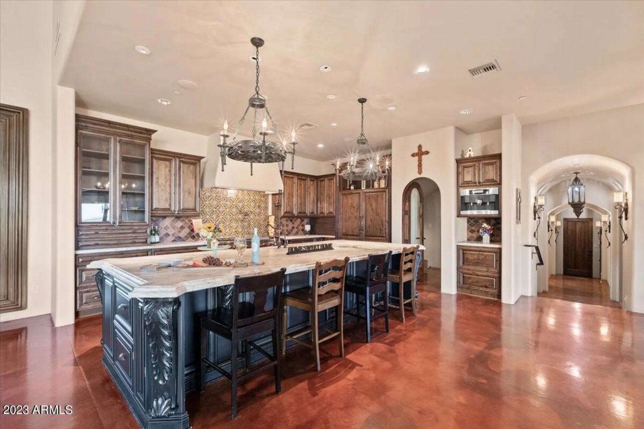 Welcome to your very own desert retreat! Nestled in the exclusive community of Eagles Nest, this home offers an unparalleled combination of luxurious living, breathtaking views & exceptional privacy. The main house features 4 bedrooms with ensuite baths & private patios, a theater, loft/game room, office/den, 2 laundry rooms & 2 half baths. The chef's kitchen has a professional gas cooktop, multiple dishwashers, butler's pantry, & spacious island. The primary suite offers a gas fireplace, private patio, large custom closet & washer/dryer. Your guests can stay in the detached casita. Enjoy the sunset & sunrise views from the resort-style backyard w/ a spacious patio, negative edge pool & outdoor BBQ. This truly special property is close to golf courses, hiking, & Fountain Park