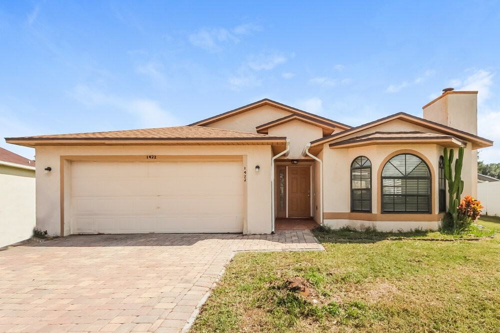 Please note, our homes are available on a first-come, first-serve basis and are not reserved until the lease is signed by all applicants and security deposits are collected. This home features Progress Smart Home - Progress Residential's smart home app, which allows you to control the home securely from any of your devices. Learn more at rentprogress com smarthome Want to tour on your own? Click the “Self Tour” button on this home’s RentProgress. com listing or call (407) 848-1919 to register for a self-guided showing at a time that works best for you. This four-bedroom, two-bathroom Kissimmee, FL rental home boasts a huge covered back patio and a renovated interior with 1,841 square feet of living space. The central living room has attractive tile flooring and a ceiling fan. Sliding glass doors lead outside and offer a view of the open lawn behind the home. The kitchen comes with premium-quality appliances and updated quartz countertops. There's plenty of all-white cabinet space and a charming window overlooking the double-basin sink. Separate from the additional bedrooms, you'll find plenty of privacy along with two large closets in the spacious primary suite. Plus, there's an en suite bathroom with an oversized vanity and a combination bathtub and shower.