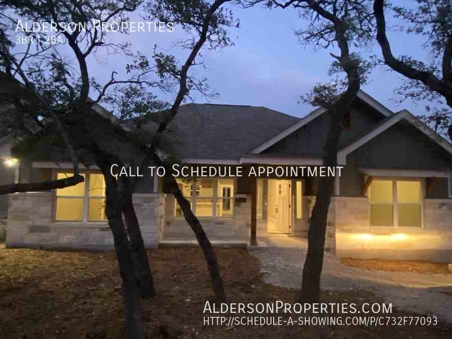Beautiful brand new Hill country home nestled between mature trees in Canyon Lake. This New 3 bedroom/2 bath home boast an open floorplan,42" all wood custom cabinets, tile floor, stainless steel appliances, and so much more.